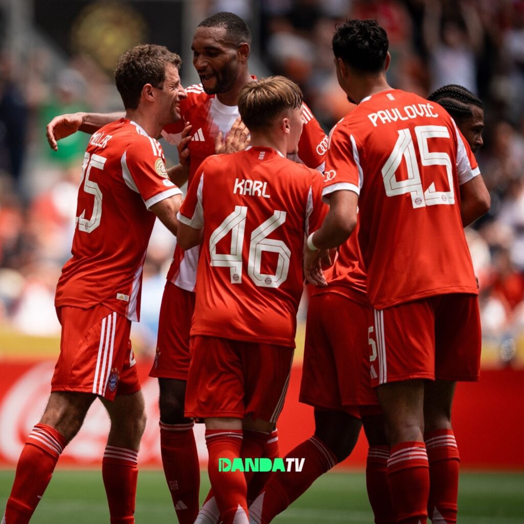 O Bayern começou pressionando desde os primeiros minutos. Kingsley Coman abriu o placar aos 6 minutos e logo ampliou aos 21. Antes disso, Sasha Boey já havia deixado o dele aos 18 minutos, e Michael Olise marcou dois gols, aos 20 e aos 48. Thomas Müller também balançou as redes duas vezes, aos 45 e aos 89 minutos, e Jamal Musiala foi um dos destaques, com um hat-trick: gols aos 67, 73 (de pênalti) e 84 minutos.